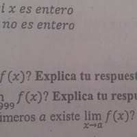 ¿Existe el límite x->a de f(x)=1 si x es entero, 0 si x no es entero?si, sípara qué valores x?Existe el límite x->2.999 de f(x)?