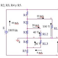 Es todo planteando Ley de Ohm básica. Comenzastes bien. R1 = E/I =(120 - 100) / ( 40-10) *10^-3 = 666.6 ohms. Otra forma no tenes. Para R2 tendrias = ( 100-40) V / ( 30-20) * 10^-3 = 6000 ohms . Sobre R3 te circularian 10 mA.( 20-10). Y con los 40...