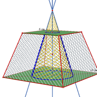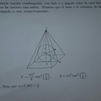 Calcule el volumen y el área total de una pirámide