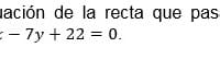 Como estas: La ecuación de la recta es: 14x - 7y + 22 = 0 Donde: A = 14; B= - 7; C = 22 La recta pasa por el punto (- 2; 8) y además es perpendicular a la recta anterior: Luego: Hallamos pendiente de la recta: : 14x - 7y + 22 = 0 m = - A/B = - 14/-7...