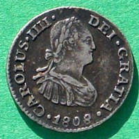 1/2 Real 1808 Busto de Carlos IV De 15 a 17 mm. de diámetro. Plata.1,49 gramos. Estas monedas se acuñaron en el año 1808 en Mexico, en Lima y en Potosí, su valor es de 25 euros en buen estado. Para saber cual es tu moneda solo tienes que mirar la...