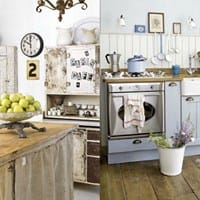 Podrías ponerlo de color madera más oscuro que el tono haya que tienes en la encimera, por ejemplo roble. Los tonos de color madera encajan bien con casi todo. Para que te combine a la perfección, podrías colocar también de ese color algún detalle...
