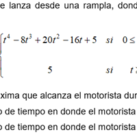 Un acróbata motorista se lanza desde una rampla, donde su altura se define en función del tiempo