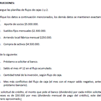 Calcule lo siguiente:1. Préstamo a solicitar al banco.2. Saldo el mes nº 12 en el flujo acumulado.ejercicio de finanzas