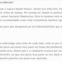 I. Hola Daniela, creo hace poco tratamos un caso bastante similar aunque nunca en esta zona, Tu organismo puede haber reaccionado al piercing y ahora se encuentra en fase de curación/cicatrización, el líquido en este supuesto no será pus, tampoco...