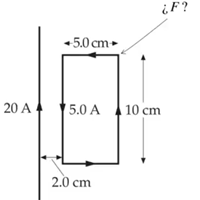 Como calculo la fuerza magnetica producida por el conductor de 20A sobre el lado superior o inferior de la espira rectangular?