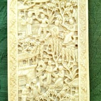 Miniatura de marfil o hueso de una escena costumbrista china. Tamaño 10 x6 cms. Origen en un convento en Sevilla. Muchas gracias de antemano.