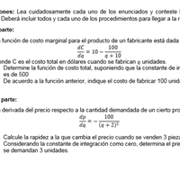 La función de costo marginal para el producto de un fabricante está dada por: