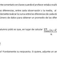 Un alumno realizó el siguiente comentario en clases cuando el profesor estaba explicando la fórmula de varianza: