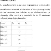 Una empresa realizo un estudio sobre el peso (en kilogramos) de las personas que trabajan como administrativos. La siguiente tab