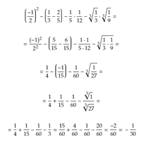 Ejercicios combinados (-1/2)elevado al cuadrado -(1/3-2/5)-1/5.1/12-raiz cúbica de 1/3. Raíz cúbica de 1/9=
