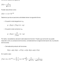Dada la función. Determine la ecuación de la recta Tangente y normal en el punto