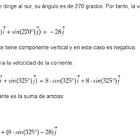 Un bote se dirige al sur a 28km/h. Si la corriente del rio es de 8km/h a 325 (grados)