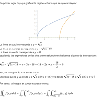 Sea R la región acotada por las gráficas de y =√x, y =√3x − 18 y y = 0