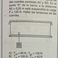 Una barra homogeneada, hallar las tensiones de las cuerdas - estática