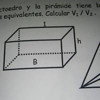 El rectoedro y la pirámide tiene bases y alturas equivalentes.Calcular v1 /v2