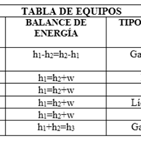 Hallar el balance de materia, energía, tipo de fluido, propiedad termodinámica básica de los equipos que se encuentran en la tab
