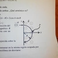 Dos ondas viajeras de igual frecuencia se propagan en sentidos contrarios por una cuerda tensa de longitud L=12m y su superposición da lugar a una onda estacionaria. Las ecuaciones de las ondas viajeras son y1 = 0'05 sen(25 pi t + 0'25 pi x) y2 =...