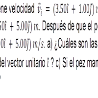 Ejercicio Fisica: Un pez que nada en un plano horizontal tiene velocidad 〖 v ⃗〗_i = (3.50i ̂ + 1.00j ̂) m/s