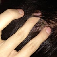 Tengo unas pequeñas costras, menos una que puede medir como la yema de mi meñique, en la parte delantera del cuero cabelludo. Adjunto foto de la "más grande". ¿Qué puede ser?