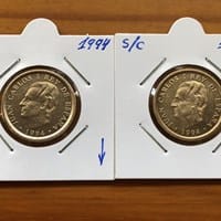 ¿Cuál es el canto ancho de dos monedas de 100 pesetas de 1994?