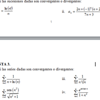 Analizar si las sucesiones dadas son convergentes o divergentes: / Analizar si las series dadas son convergentes o divergentes