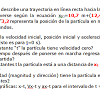 Una partícula que describe una trayectoria en línea recta hacia la derecha, está condiciona a moverse según la ecuación