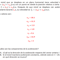 Un móvil que se desplaza en un plano horizontal tiene velocidad inicial 〖 v ⃗〗_i = (v_ix i ̂ + v_(iy ) j ̂) m/s en un punto en