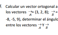 Calcular un vector ortogonal a los vectores = (3, 2, 8); = ( -8, -5, 9), determinar el ángulo entre los vectores Y