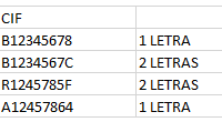 Distinguir entre CIF con 1 letra y con dos letras