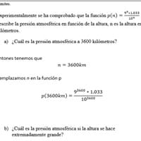 Experimentalmente se ha comprobado que la función p(n)=(9^n*1.033)/〖10〗^n , describe la presión atmosférica en función de la al