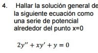 Ecuaciones Difer :Hallar la solución general de la siguiente ecuación como una serie de potencialalrededor del punto x=0