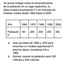 Se quiere indagar sobre el comportamientode la población en un lugar específico, latabla muestra la población P ( en millones)