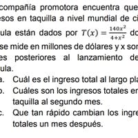 Una compañía promotora encuentra que losingresos en taquilla a nivel mundial de cierta