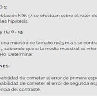 En una población N (θ, 5), se efectúan sobre el valor de la media dos posibles hipótesis: H0: θ = 12 y H1: θ = 15 Mediante una m