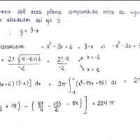 Calcule el volumen del área plana comprendida entre las siguientes funciones, engendrado al girar alrededor del eje Y