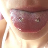 Mi piercing de la lengua surface con pieles blancas alrededor