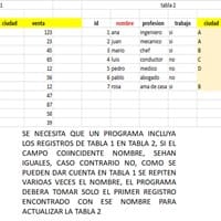 Y... ¿si en la tabla1 en nombre fuera Carlos Andrés y la persona que digita el nombre en la tabla2 escribiera Carlos Andres?... ¿Ya sabes que son los HOMÓNIMOS?, solo por un punto los nombres no coincidirían... Para el caso tuyo deberías de...