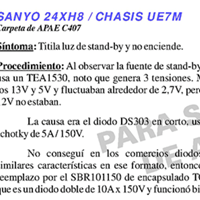 Hola Tengo un TV LCD Sanyo 24XH8 al que tuve que hacer reparar 2 veces la fuente en menos de 3 meses con el consiguiente gasto. El técnico me dijo que era un diodo de la fuente y efectivamente es así porque investigando en Internet encontré un...