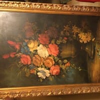 Quisiera saber el valor de esta pintura al óleo de gran tamaño y nombre del pintor. Tiene 1,20 de alto y 0,80 de ancho