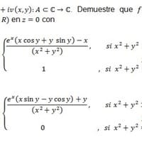 Debo demostrar que se cumplen las ecuaciones cauchy-riemann