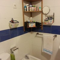 Tengo un baño con azulejos blancos y una franja a la mitad de azulejo azul oscuro. ¿Qué mueble pongo?