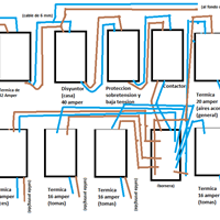 Estoy realizando el tablero principal de mi casa de la siguiente forma, quería saber si le ven algún detalle a cambiar Básicamente tengo la entrada en cable de 6mm que a a un disyuntor de 40 amper. Luego a un protector de sobretensión y bajatension...