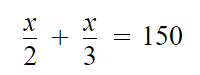 Escribir una ecuación acorde con el enunciado: “La mitad de un número más un tercio del mismo es igual a 150”.