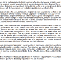 Este es el texto: Pues sepa Vuestra Merced, ante todas cosas, que a mí llaman Lázaro de Tormes, hijo de Tomé González y de Antona Pérez, naturales de Tejares, aldea de Salamanca. Mi nascimiento fue dentro del río Tormes, por la cual causa tomé el...