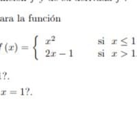 Continuidad, diferenciabilidad encuentre f(1)- y f(1)+ para la función