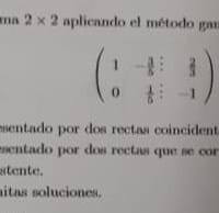 Al resolver un sistema 2x2 aplicando el método gausiano se obtiene