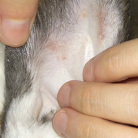 Manchas rojizas interior oreja de un conejo