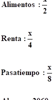 Planteamiento del problema: En la casa de Claudia, los gastos se administran de la siguiente manera: