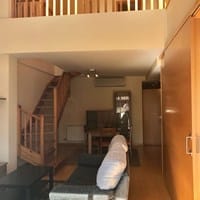 Buenas, acabamos de comprar un duplex muy iluminado con mucha madera, parqué, puerta, escalera, y ventanas blancas.